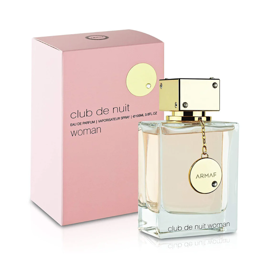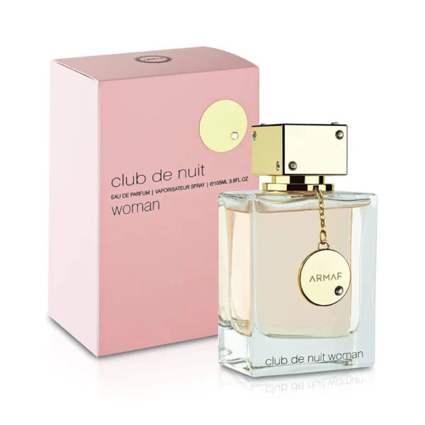 Club de Nuit Woman de Armaf es una fragancia de la familia olfativa Floral Frutal para Mujeres. Las Notas de Salida son naranja, bergamota, toronja (pomelo) y durazno (melocotón); las Notas de Corazón son rosa, jazmín, lichi y geranio; las Notas de Fondo son pachulí, almizcle, vainilla y vetiver.