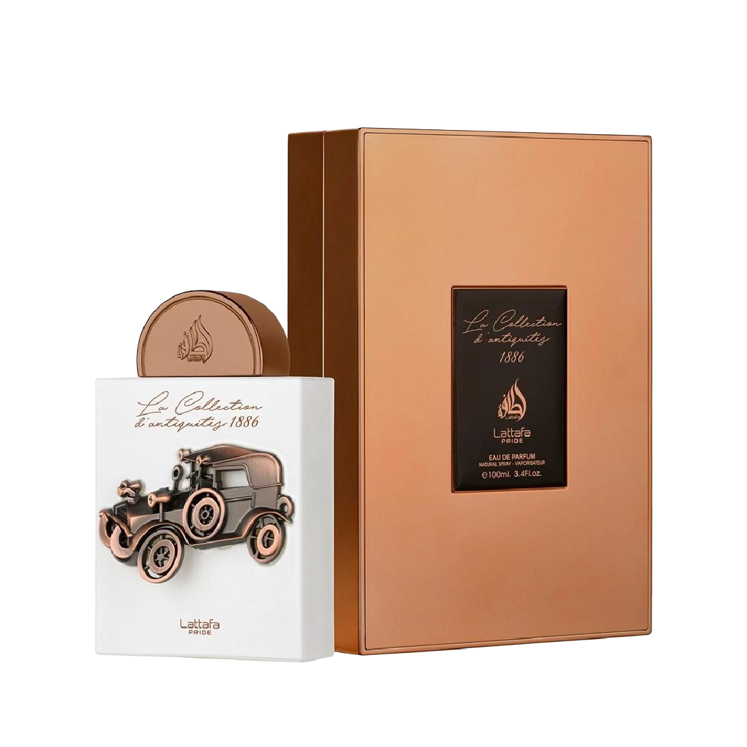 La Collection D’antiquités 1886 de Lattafa Perfumes es una fragancia de la familia olfativa Aromática para Hombres y Mujeres. La Collection D’antiquités 1886 se lanzó en 2023. Las Notas de Salida son yerba mate y bergamota; las Notas de Corazón son raíz de lirio, haba tonka, canela, jazmín y Corteza; las Notas de Fondo son chocolate blanco, vainilla, tabaco de flor blanca, almizcle blanco y pachulí.