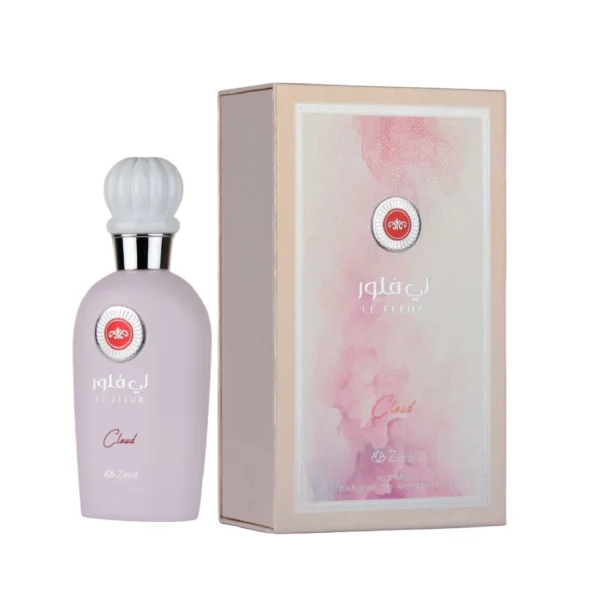 Las notas del perfume “Le Fleur Cloud” de Zakat son pera, jazmín y vainilla, creando un aroma floral-gourmand suave, cremoso y soñador. Las notas de salida son pera, las notas de corazón son jazmín y las notas de fondo son vainilla.