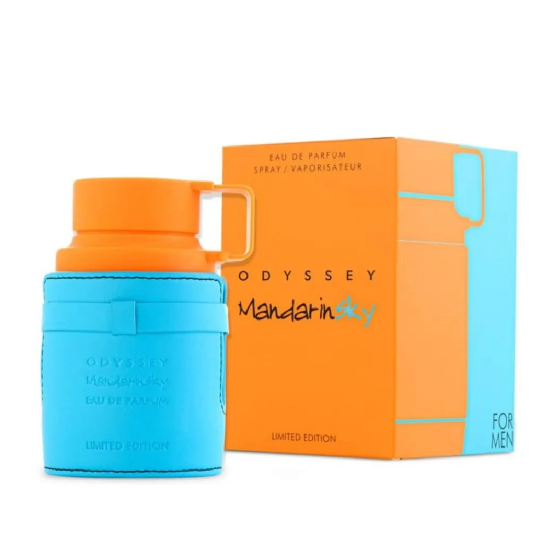 Odyssey Mandarin Sky de Armaf es una fragancia de la familia olfativa para Hombres. Odyssey Mandarin Sky se lanzó en 2023. Las Notas de Salida son mandarina, naranja, azafrán y salvia; las Notas de Corazón son caramelo, haba tonka y cempasúchil (tagete, clavelón); las Notas de Fondo son ambroxan, cedro y vetiver.