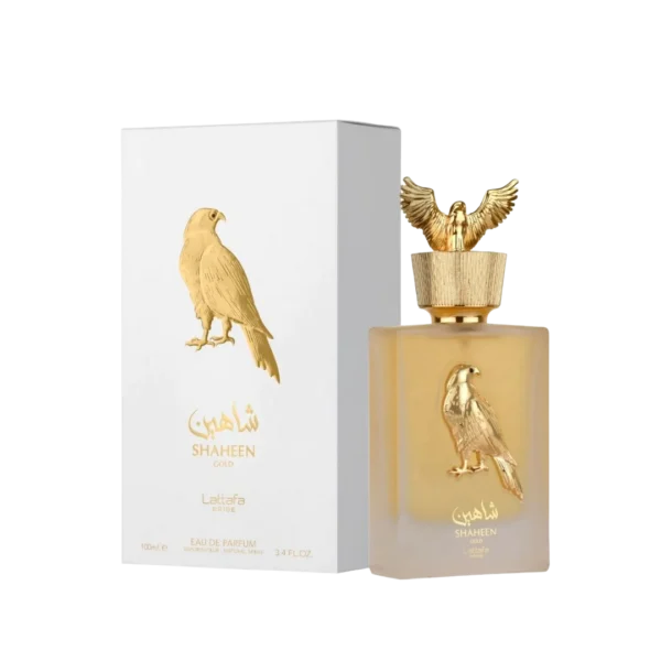 Shaheen Gold de Lattafa Perfumes es una fragancia de la familia olfativa para Hombres y Mujeres. Shaheen Gold se lanzó en 2022. Las Notas de Salida son piña y toronja (pomelo); las Notas de Corazón son lavanda y higo; las Notas de Fondo son vainilla, pachulí y haba tonka.